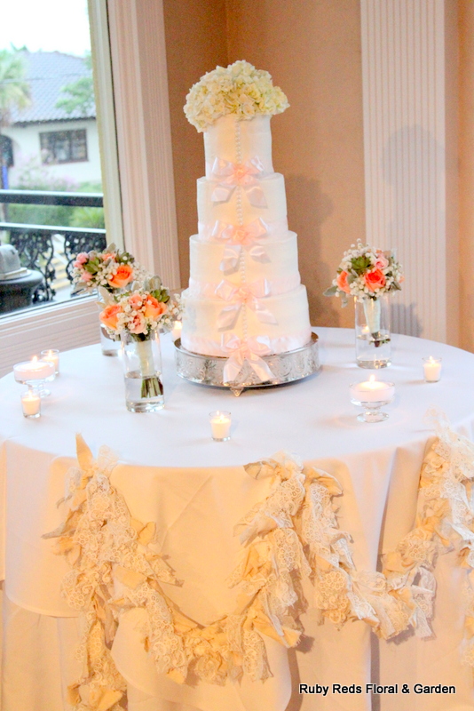 Jacob and Jennifer were married at The White Room in Historic St. Augustine, FL. They chose soft colors in mint, peach, pale pink, silver and white. Succulents were incorporated into the boutonnieres and the bouquets. We added touches of burlap and lace throughout including table runners and garlands from one of our previous clients. Enjoy the photos!
