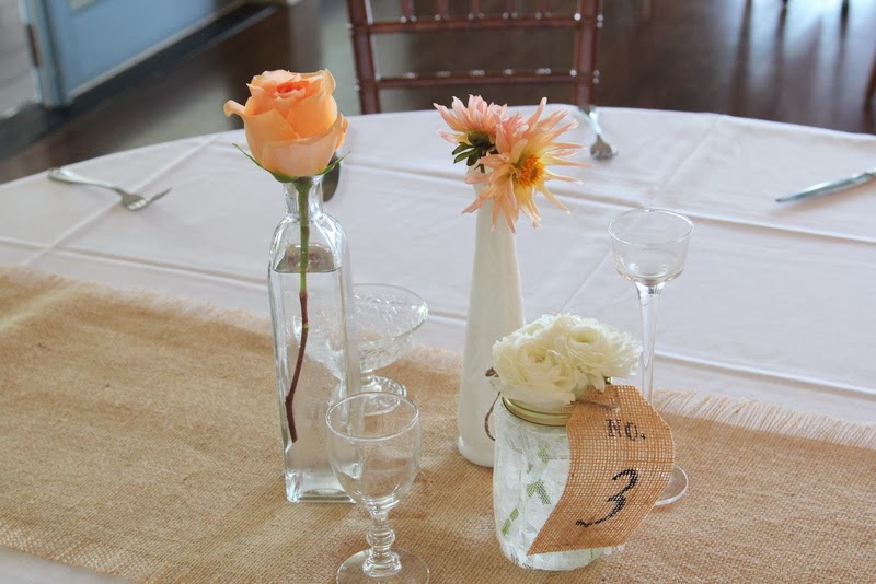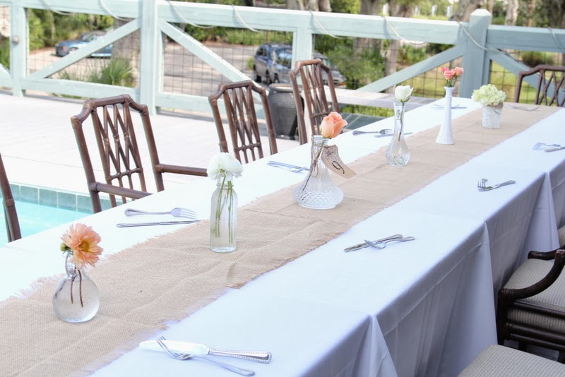 Kathleen and Chris were married at Oyster Bay Yacht Club in Fernandina Beach, FL. We used flowers in peach and cream throughout the wedding with touches of burlap. Kathleen collected all the vessels for the centerpieces. Enjoy the photos!